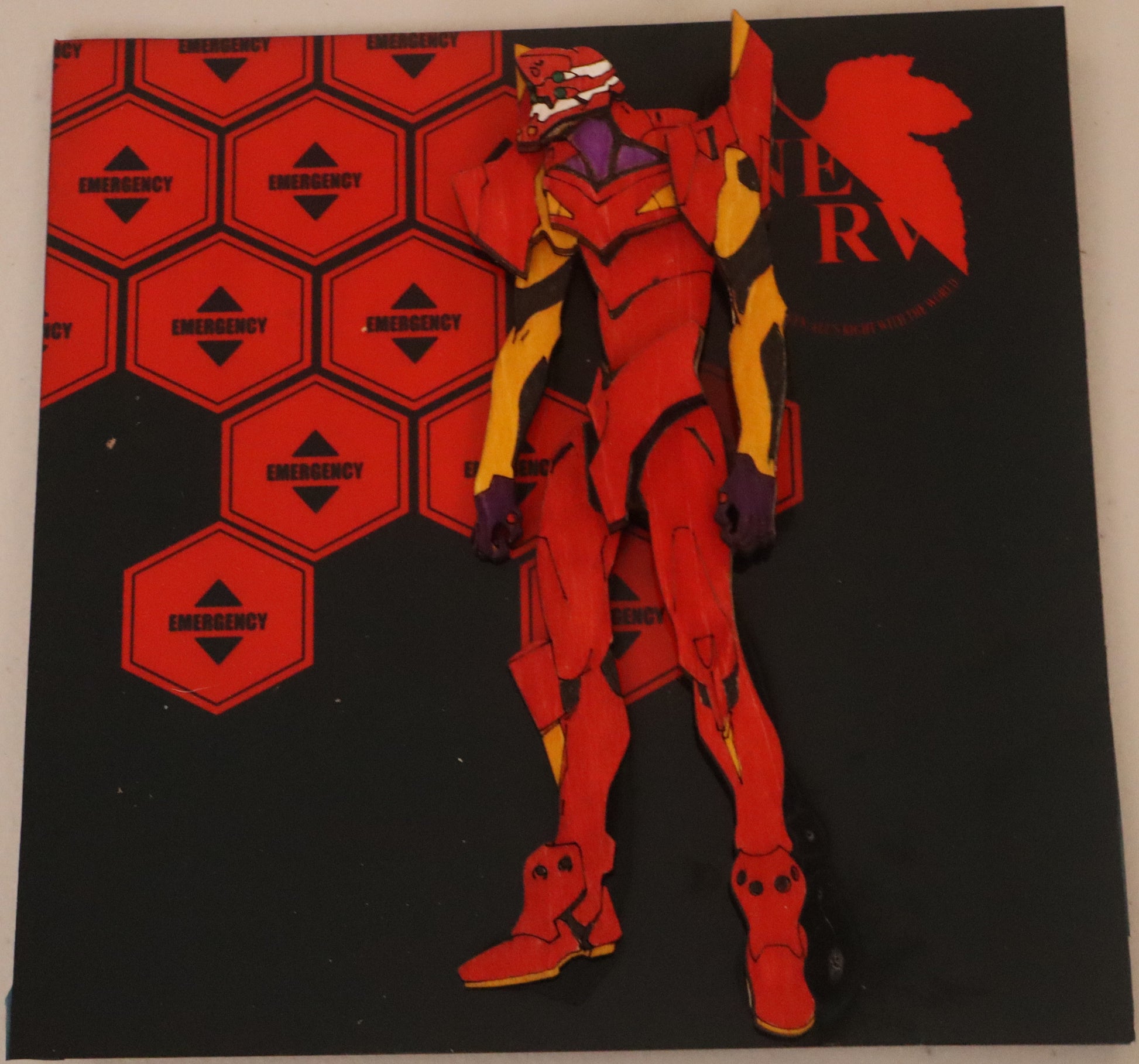 Multilayer wood art piece based off Unit 02 from Evangelion.