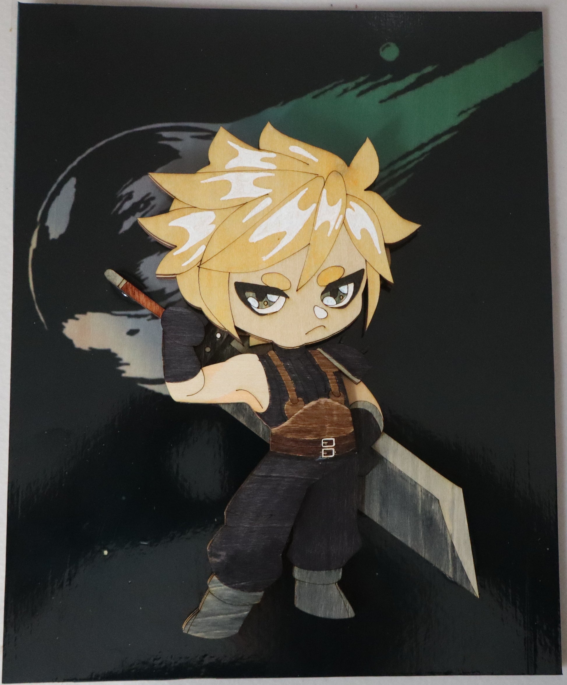 Multilayer wall art based on Cloud from Final Fantasy 7.