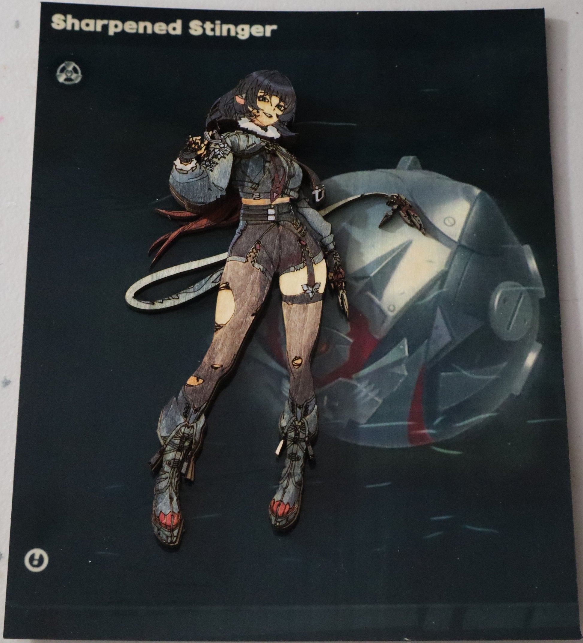 Multilayer wood art based on Jane Doe from Zenless Zone Zero. She comes in an 8X10 frame