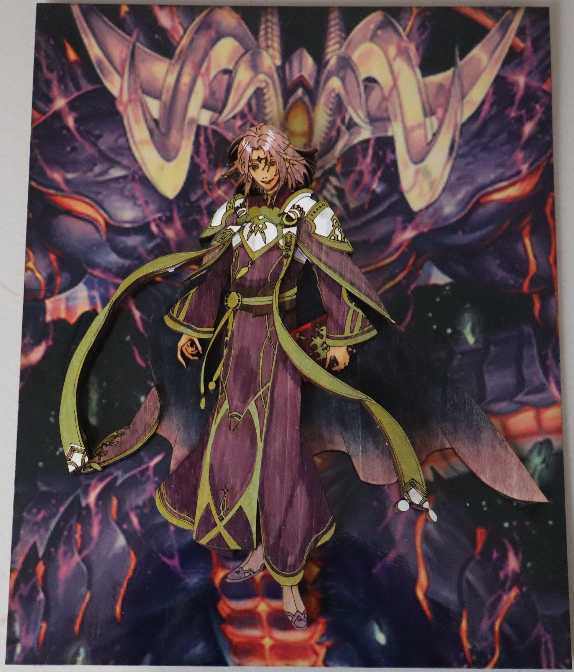 Multilayer wood art based on Lyon from Fire Emblem. He comes in an 8X10 frame