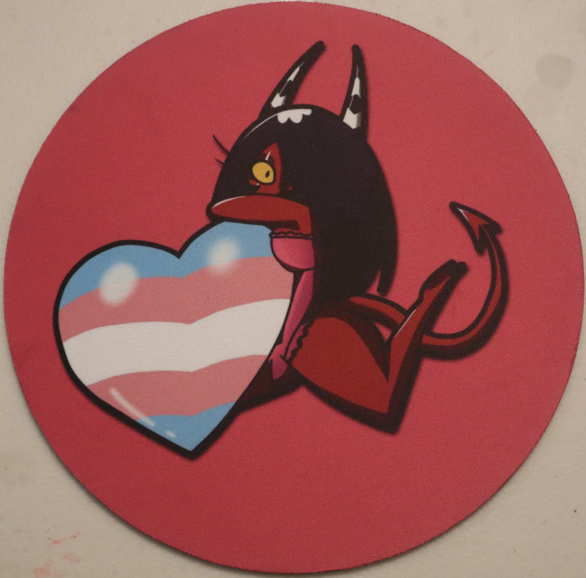 8" Round Neoprene Mouse Pad based on Sallie May on Helluva Boss with art from Donny Doeven.